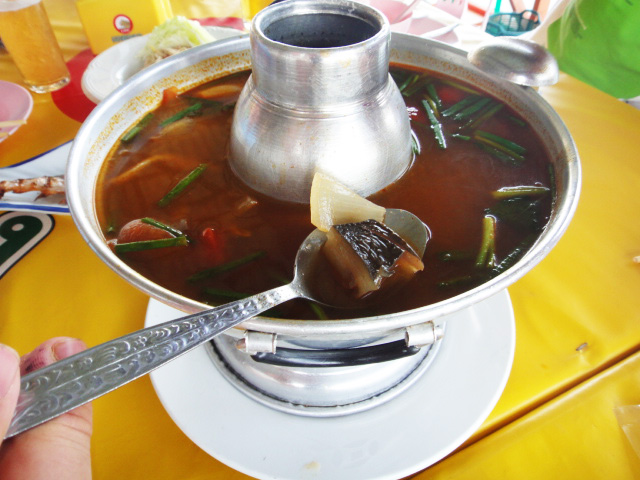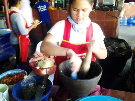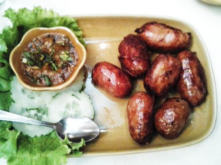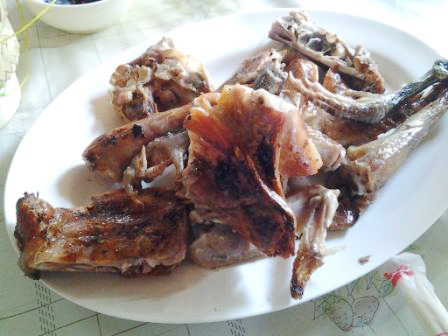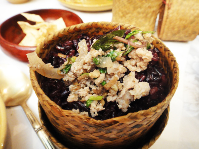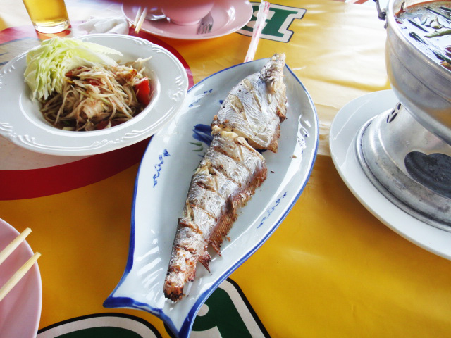 焼き鳥:ビンカイ(タイ語:ガイヤーン)地鶏は運動し過ぎなのか身が少ないです。ラオスの料理は、タイの東北地方と全く同じです。青パパイヤのサラダ:ソンタムはその代表的な料理。辛くなければおいしいのですが・・・唐辛子たっぷりです。
